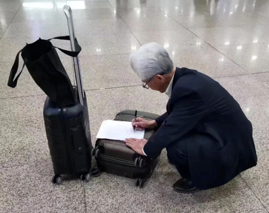 昨天,我刷到了一张 何镜堂院士的照片,大师头发几乎都白了,还趴在行李箱做成的临时工作台上画着什么,我突然有一种莫名的酸楚。